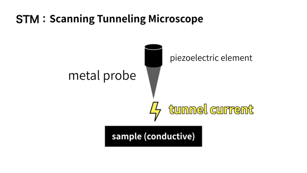 ・STM is a microscope that uses tunneling currents generated between a metal probe and a conductive material to measure the unevenness of a sample surface
