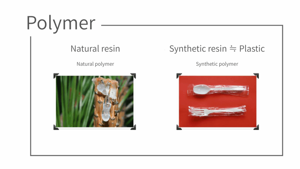 Although the term “resin” originally encompasses natural materials as well, under Japanese standards (JIS), it is defined as “a raw material for plastics,” so it is primarily used to refer to synthetic materials.